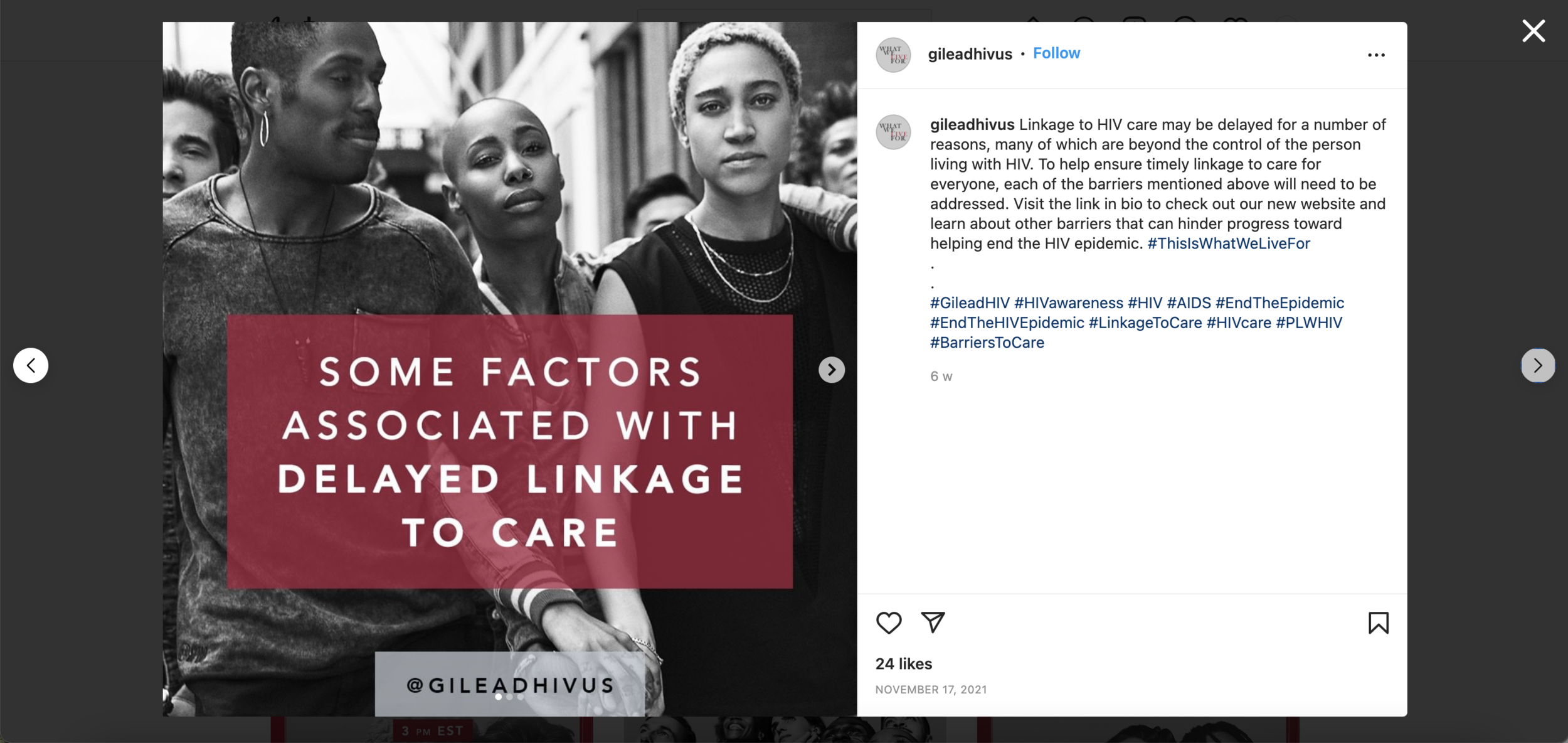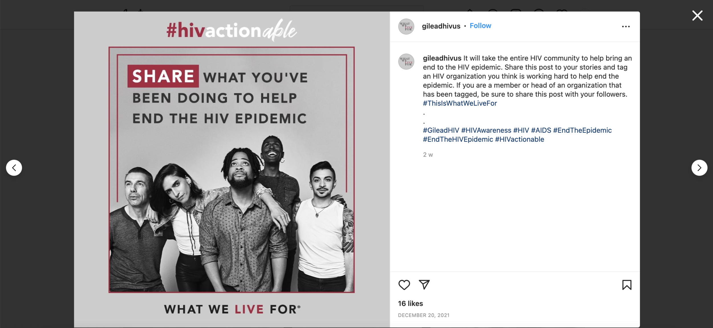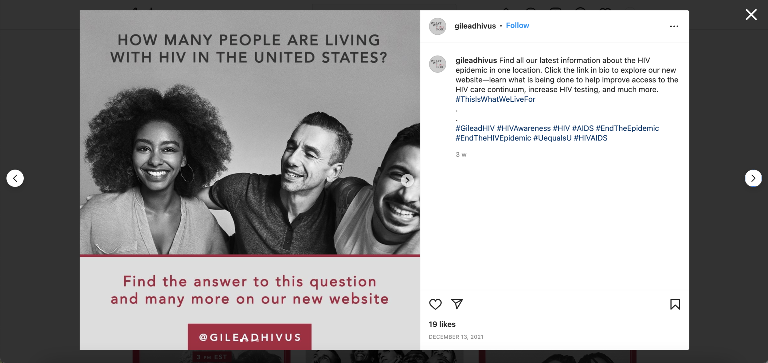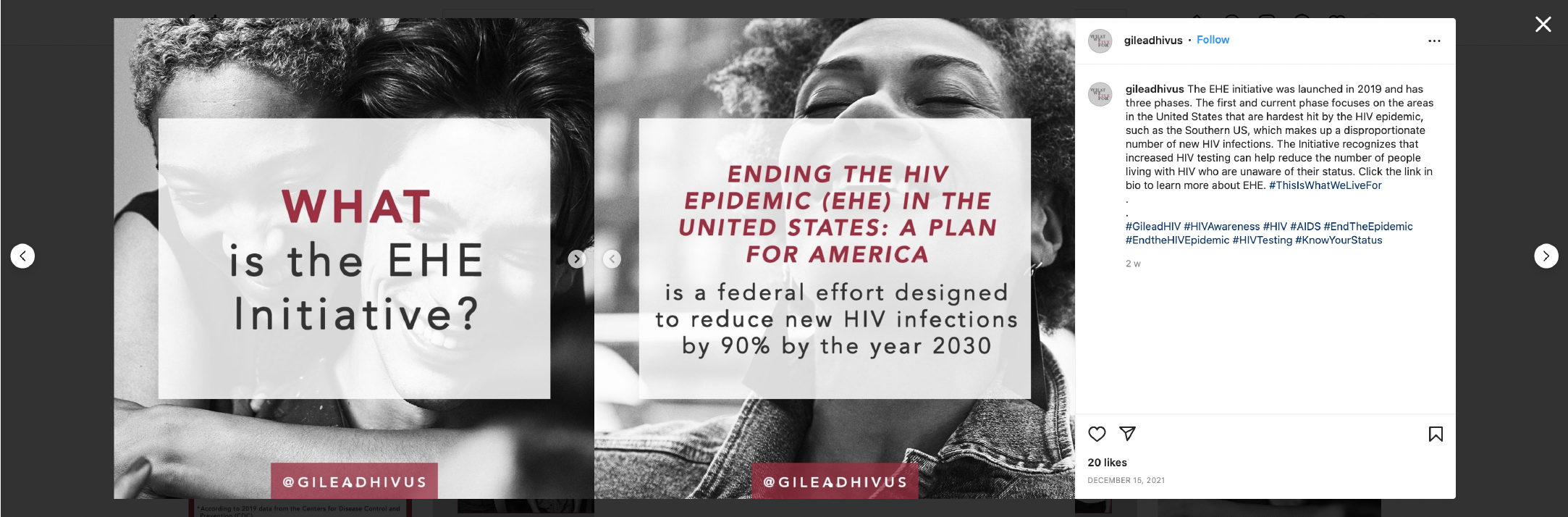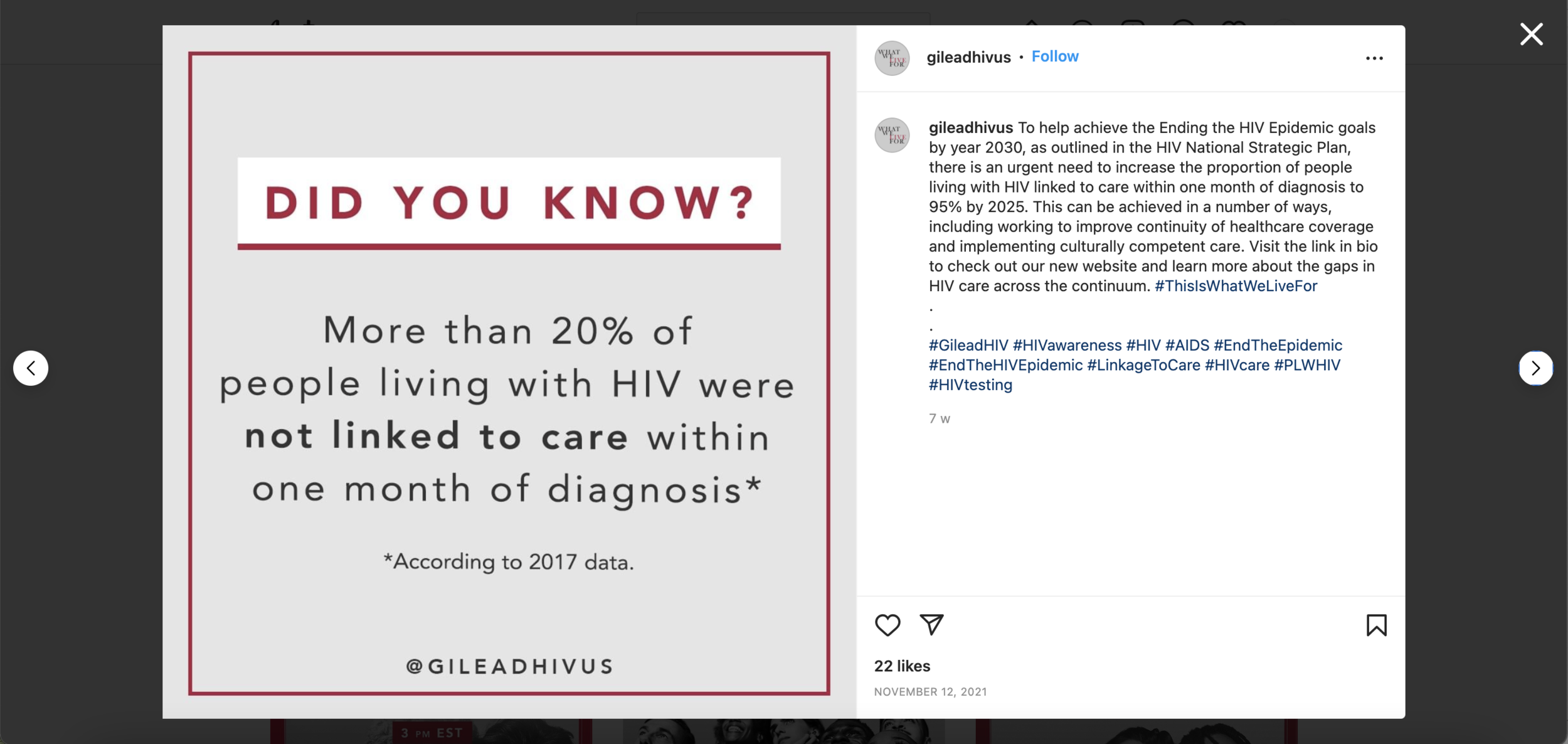 I worked with the Gilead HIV team at Heartbeat to concept and write posts for a social campaign that highlighted the impact of HIV on Blacks and Latinos living with HIV, particularly in the American South, and the struggles they encounter for access to care. The campaign also focused on World’s AIDS Day (December 1, 2021) and reinforced Gilead’s commitment to helping end the HIV epidemic by 2030.